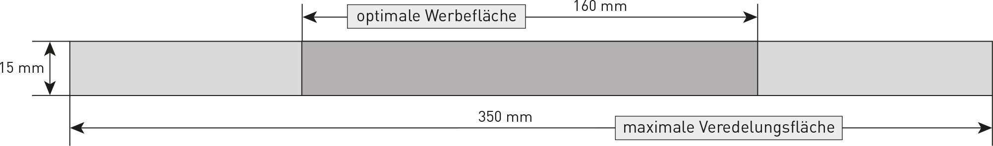 - Daten: als .jpg oder .pdf anlegen - ohne Zuschnitt (nur auf 350 x 15 mm)